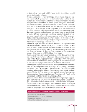 re Metaboliche – alla quale nel 2017 sono stati destinati i fondi raccolti