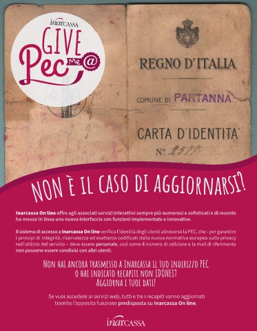 Non hai ancora trasmesso a Inarcassa il tuo indirizzo PEC
