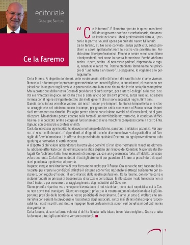 ministra con serietà la previdenza e l’assistenza degli associati, senza mai sfilarsi dalle proprie respon-