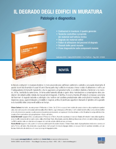 dei fenomeni di degrado naturale e patologico che incidono sul carattere prestazionale delle costruzioni in muratura, indivi-