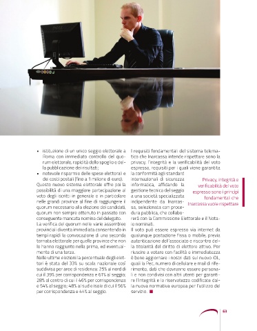 rum elettorale, rapidità dello spoglio e del- privacy, l’integrità e la verificabilità del voto
