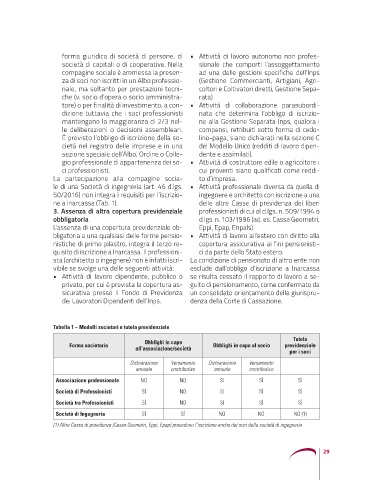(1) Altre Casse di previdenza (Cassa Geometri, Eppi, Epap) prevedono l’iscrizione anche dei soci delle società di ingegneria