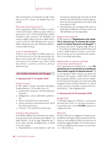 • ritorno assoluto e investimenti reali: 18,5% per l’esercizio 2019, con un avanzo economi-