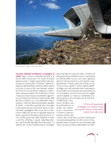scinante è certamente il “Corones”, edificio di- ga Messner. Proprio sulla cima di Plan de Co-