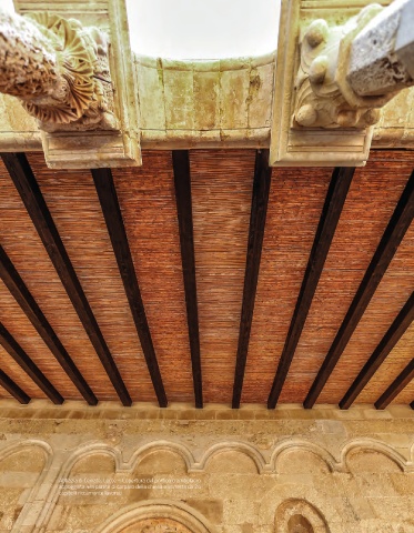 Abbazia di Cerrate, Lecce – Copertura del portico o ambulacro appoggiata alla parete di carparo della chiesa e sorretta da 24 capitelli riccamente lavorati